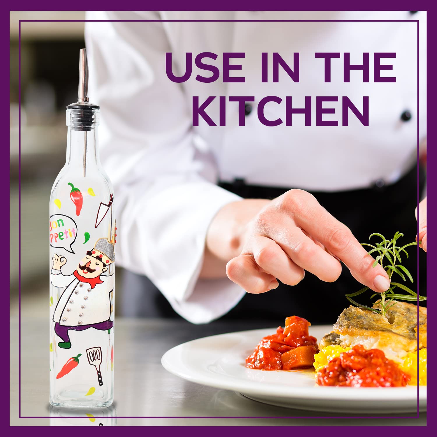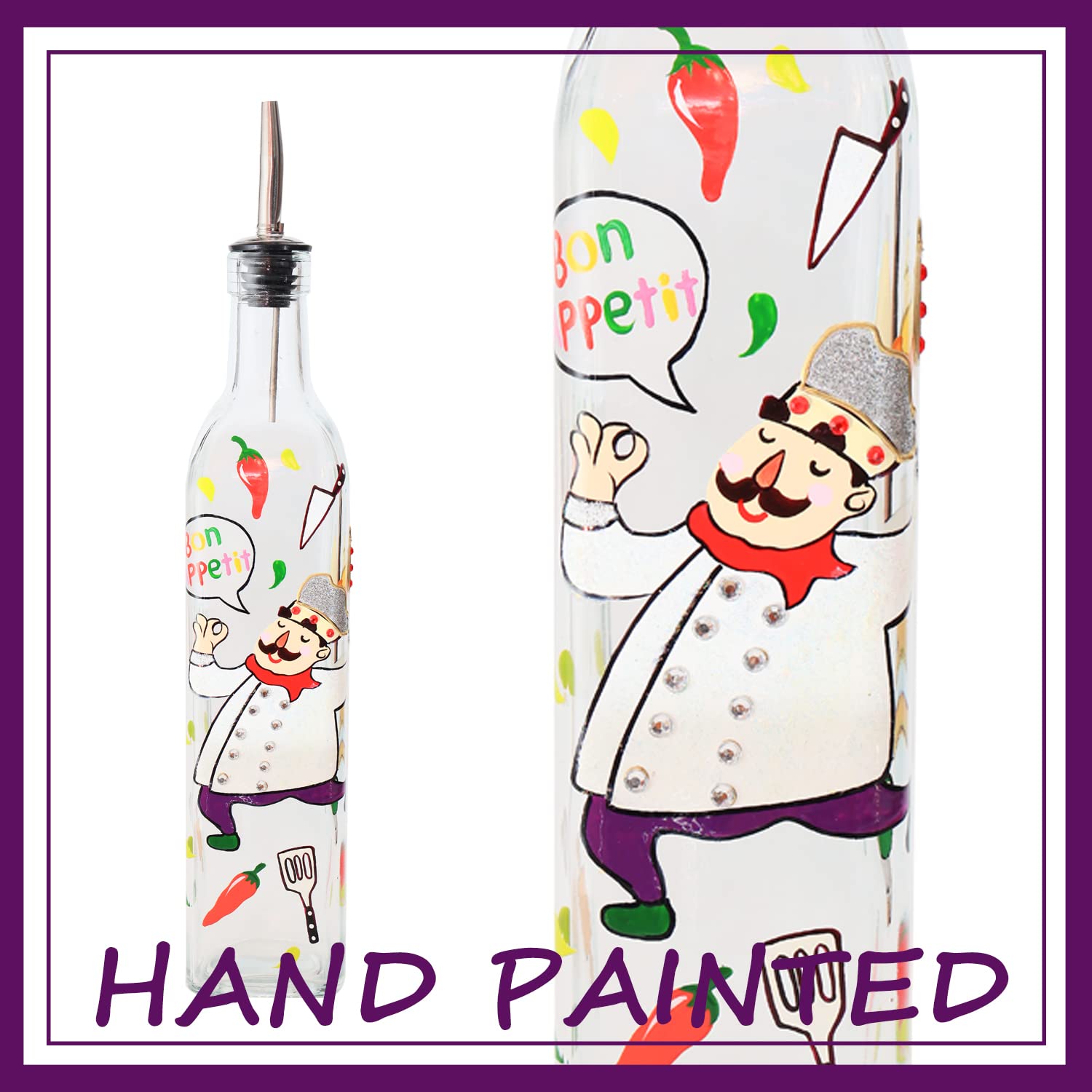 YIYUKODO 17oz Hand Painted Glass Olive Oil Bottle - 500ml Green Oil & Vinegar Cruet with Pourers and Funnel - Olive Oil Carafe Decanter for Kitchen (chef)